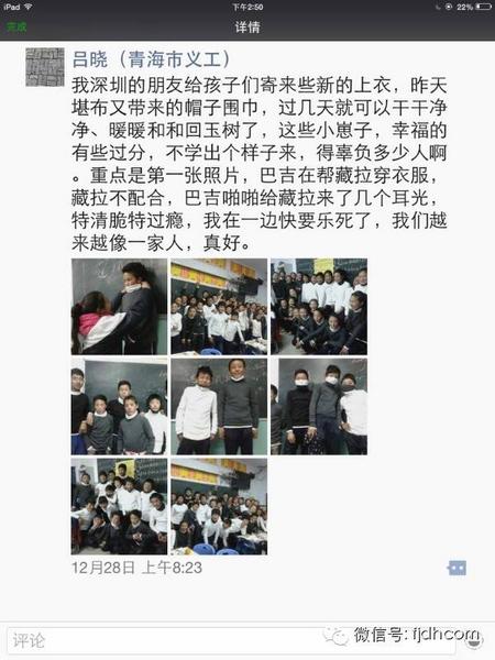 感谢所有的义工朋友帮忙收取丶分配,把一件件衣物交至同学们手中,在寒冬时节同学们能穿上暖暖的保暖衣,看着一张张灿烂的笑脸,天真无邪的脸上洋溢着开心快乐!看着义工朋友传来的照片,遥远的我此刻也感受到了温暖,感谢大家的美好祝福,感谢佛缘,让我们相识!