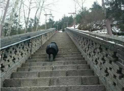 只能朝小台,在黛螺顶脚下,我发了愿并且虔诚祈求上师三宝加持于我,然后三步一拜开始朝台,三步一拜,一步一个脚印,大病初愈的我比正常人还要有体力,我远远超越登山的人群,是的,同行的同伴很惊讶我的体力,因为气血虚弱,我比一般人平时多走几步都会吃力,可是现在1080个台阶我走的稳稳地,一个多小时我就到达山顶了。我深刻感受到佛菩萨加持力,仿佛他们就在我的头上方,给我力量,又或者在路的前方,等待我到达胜利彼岸,是的,1080个台阶仿佛就是我修行的道路,脚踏实地,不关注周围的风景,只在乎脚下的路,一步一步,一路有三宝护持,怎会到不了家呢?心量越大,就越能感受到佛菩萨的加持,是的,此刻我与佛菩萨心灵相同了,因为我明白了佛菩萨大慈大悲的舍己心。