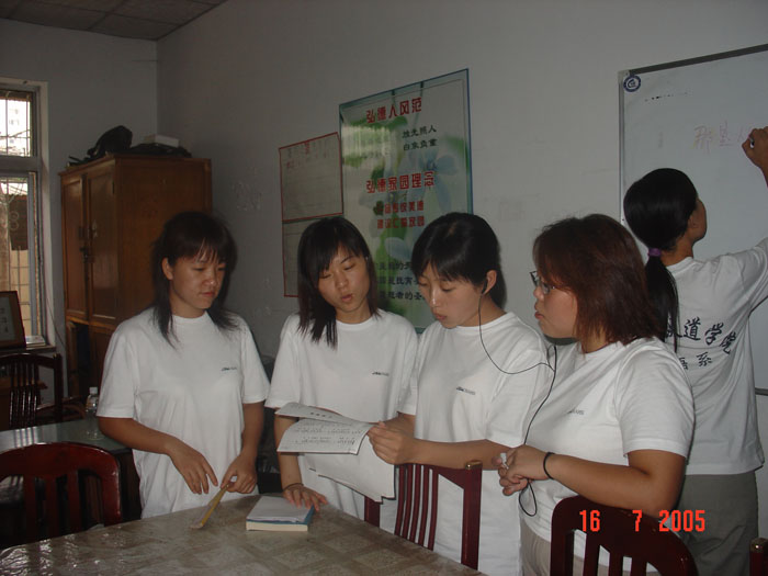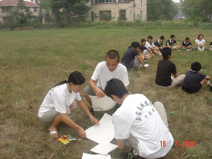 来自北京首都师范大学、石家庄师范大学、铁道学院的共14名大学生志愿者参加了夏令营活动,他们将担负起辅导孩子们学习、照顾孩子们生活的任务。