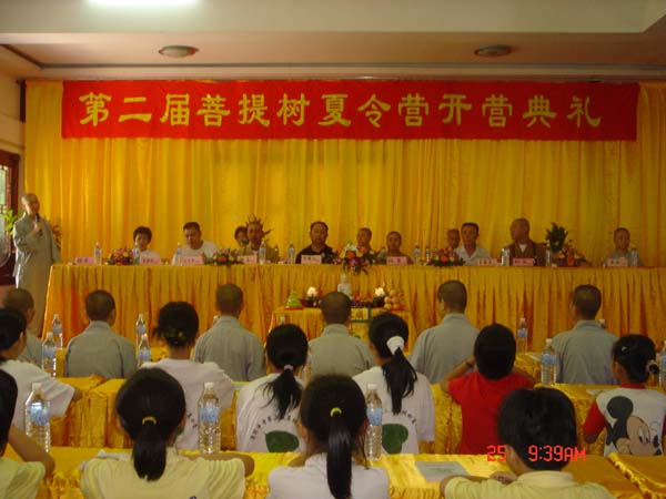 在这金莲盛开的季节里,莲开净寺第二届菩提树夏令营在今天上 9:00举行了开营典礼,参加本次菩提树夏令营的营员有150余人.