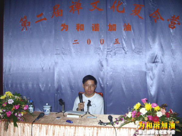 下午著名学者陈云君先生以《守住道德底线---美化人生 诗化人生 禅化人生》为题,与青年营员们分享了读书、学佛的心得。陈先生通过审视知识分子的现状,以“不为一己之私损失他人”为道德第线。在当今社会,要体会中华民族文明的精髓,在美化生活的基础上实现升华,不受任何身外之物的影响,实现诗化生活,禅化生活,除去烦恼,得到快乐。