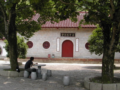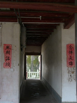 我们看了墙报,知道寺内还有虚云纪念堂,但找了几次都没有看见。就在要放弃的时候,一个师父扛着锄头走过来,顺着他走的路,我们来到了后面的小院。
