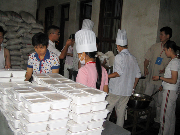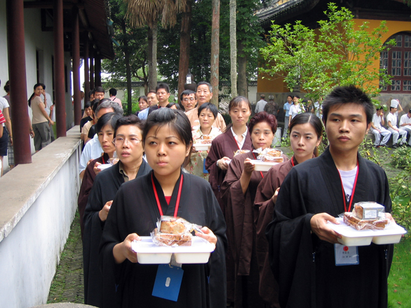 分装好的供僧餐盒,一份份落起来,等候着云板响起。