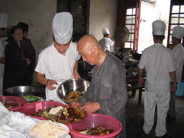着双排黑扣的正是枣子树的总厨师长沈汉波。有他坐镇,就能确保后场顺利进行。