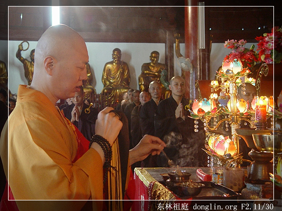 8月15日,庐山东林寺举行纪念抗日战争胜利、世界反法西斯战争胜利60周年和平祈祷法会,东林寺住持大安法师主法在法祈祷世界和平。大雄宝殿内,地藏菩萨前为抗日及反法西斯战争中的三军将领,爱国英雄,一切无辜死难众生立的超度莲位。东林寺四众弟子参加了法会。