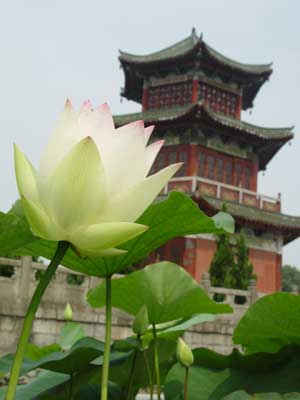 东林寺前有莲池一方,白莲朵朵,清波凌凌,绿叶田田。传说,此地始为东晋名士谢灵运所凿。谢灵运(385-433)是谢玄之孙,袭封康乐公,故人称“谢康乐”。他才华横溢,高傲自负,对慧远大师却“肃然心服”,要求加入莲社,慧远大师以其心杂未准入社。谢灵运虽未人莲社,却在东林寺内翻译经文。其间,他帮助东林修建了“莲池”。池中白莲,古称“青莲华”,中外驰名。公元1321年,日本僧人澄圆将莲种带到日本,并大弘净土教义,力扬东林之风,青莲花亦开遍日本国。1992年,在各界人士的努力下,日本佛教界将莲种回赠东林寺,杨成武上将也为刚刚修复的莲池题写了“莲池”二字。至此,“青莲华”又重新盛开在东林祖庭。