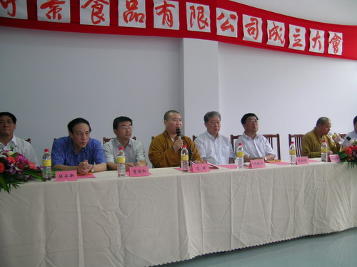 8月8日上午,玉佛禅寺素食品有限公司举行了成立大会,中国佛教协会副会长、上海市佛教协会会长、上海玉佛禅寺方丈觉醒大和尚,市、区有关部门的领导曹海红、叶维华、陆永新、夏斯德等出席了会议。觉醒大和尚、市民宗委曹海红副主任等领导先后发表讲话,对素食品公司的成立表示热烈祝贺并提出了殷切期望。随后,与会领导为成立活动剪彩。伴随着喜庆的鞭炮声,觉醒大和尚与普陀区委叶维华副书记为素食品有限公司成立揭牌。