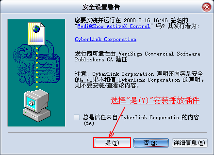 组图下载、在线观看 短 片 名 幅数 时间 合计: *注①在线观看对带宽较高要求,请根据您的网段选择"电信"或"铁通"服务器以便能流畅地在线观看组图. *注②若您用的电脑是第一次在线观看组图,点击"观看"时,首先会弹出对话框(如左图),请点击"是(Y)"按钮以选择安装在线观看所需的插件. *注③: 在线观看组图时,因网速的原因,第一次观看某一组图时,背景音乐和画面会不同步(画面滞后),请在画面下载完开始播放时按下"F5"键(IE浏览器"刷新"功能的快捷键),这样音乐和画面就开始同时从头播放了. 组图VCD版下载 第一辑 第二辑 内 容