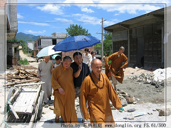 从2005年7月17日到7月29日,东林寺护生会共接收到寺院内外四众弟子以及善信的捐款2万2千6百元(其中西林寺四众捐款3000元),以及一部分救灾物资。29日早上4点多,救灾车队出发。由于道路遥远崎岖,中午11点才到达修水。