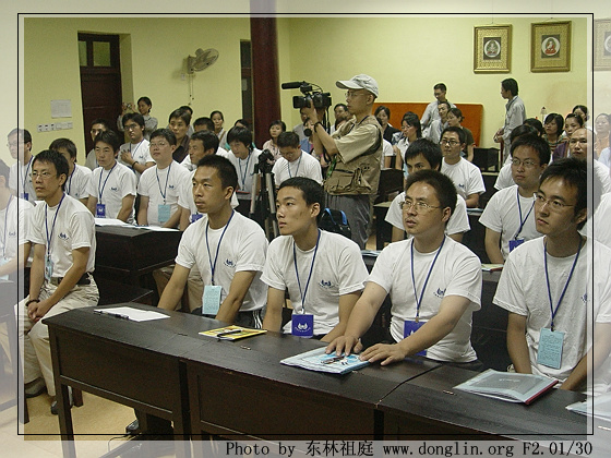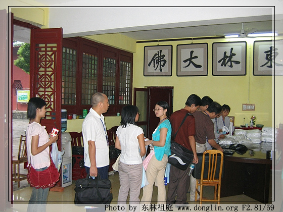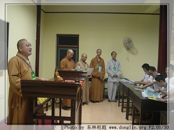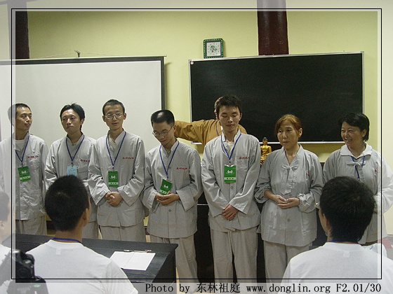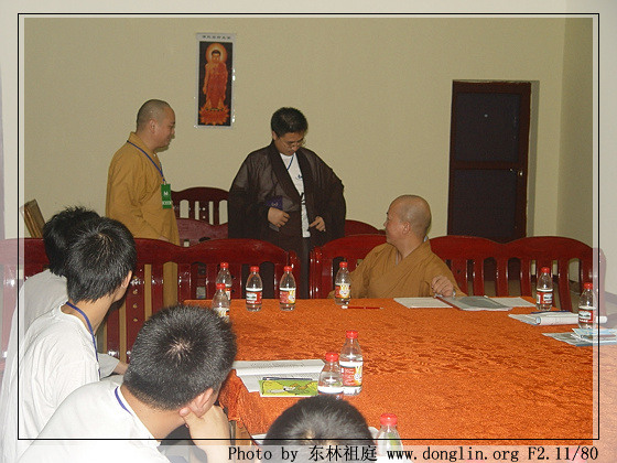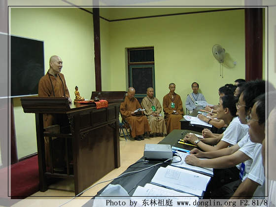 8月21日下午起,庐山东林寺首届“净土文化夏令营”营员开始陆续报到。东林寺特派义工和车辆到火车站接站。营员报到后,开始领取资料,熟悉环境。22日晚6点,在东林寺研究生班教室举行了夏令营营员预备会。会议由觉海法师主持,进行了分组、纪律和仪规宣讲、辅导员和义工介绍、观看东林风光介绍《这一方净土》。会后分组进行了讨论,并由法师示范,传授了穿海青的方法。