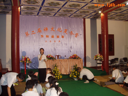 8月10日湖北黄梅四祖寺第二届禅文化夏令营隆重举行。千年禅寺又一次迎来一张张年轻的面孔,来自五湖四海近200名青年学子相逢在双峰山下,共度为期七天的禅文化夏令营生活。本届夏令营的主题是:“为和谐加油。”