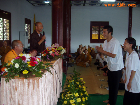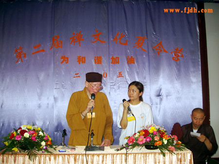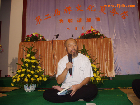 在阐述本届夏令营的主题时,净慧老和尚从中国传统文化中的“和”的精神讲到佛教的“六和”,认为“爱国爱教,自觉觉他,‘为和谐加油’,是佛弟子分内之责。”