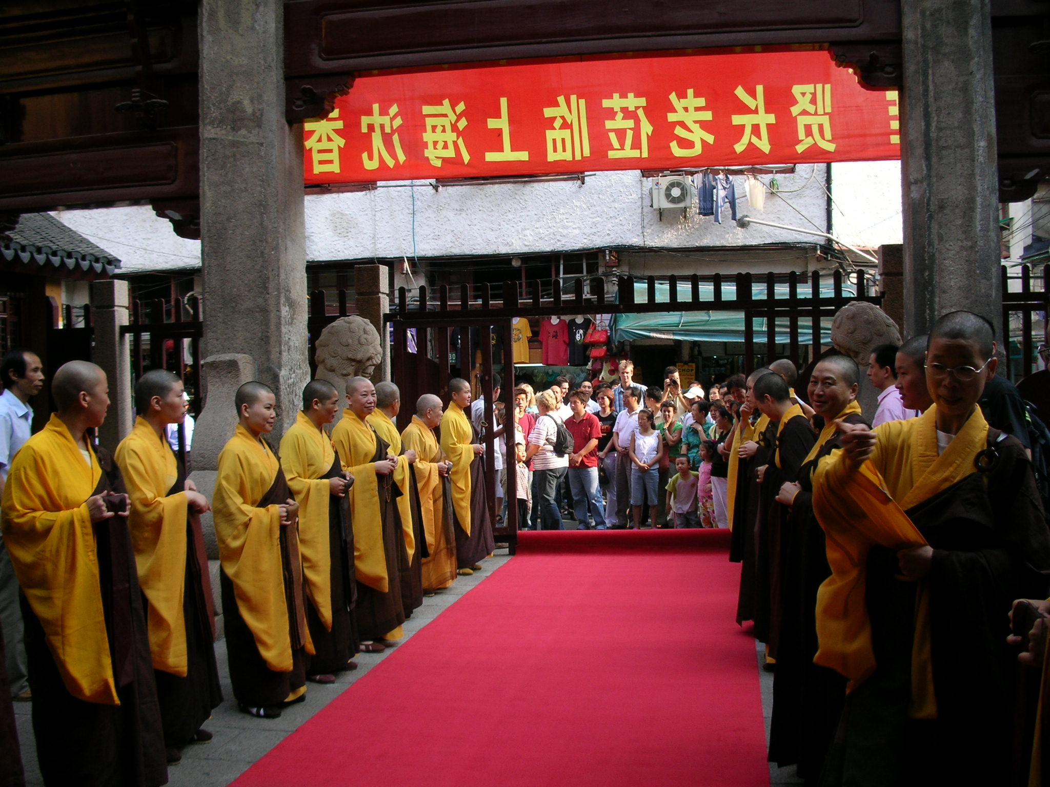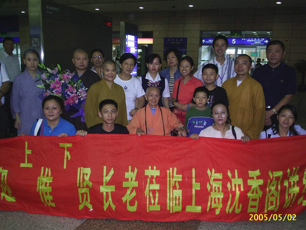 8月25日中午,重庆市佛教协会会长、重庆市佛学院院长、 慈云寺方丈惟贤长老抵达上海浦东机场,受到四众弟子的热烈欢迎.下午四时,惟贤长老莅临上海沉香阁,监院德育法师主持迎接长老的仪式。惟贤长老于沉香阁开讲《大方广佛华严经》要义。