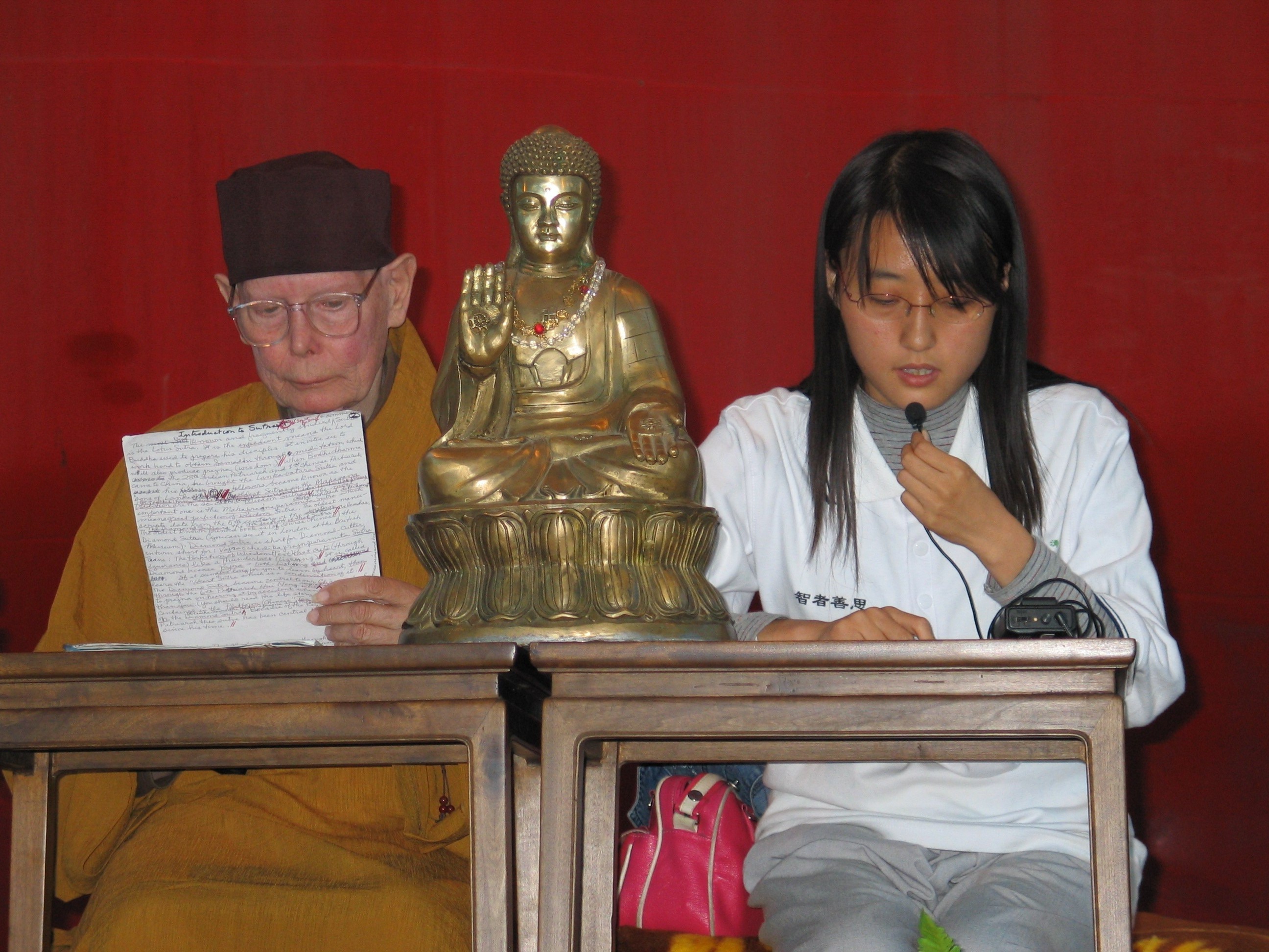 清凉只向此处寻 宿鸟水干迎晓闹,浮云天际受风忙。 清凉界中不觉时,今天已是五台山清凉之旅夏令营的第三天。上午,来自瑞士的明契法师在大圣竹林寺简易的讲棚里为营员们用演讲的形式开启了今日的清凉之旅。法师用英语对《金刚经》的缘起和教理作了介绍。明契禅师俗名莉丽—玛丽·约翰逊 。1931 年生。1994年她被净慧大和尚收为皈依弟子。1999 年 2 月 25 日 ,她在净慧大和尚座下正式落发并受沙弥尼戒,同时接受临济宗法脉传承,被认定为禅师。在今天的佛学讲座中,法师深情地开示:“当无名的乌云被拨开哪怕只一刹那工夫,开悟也会如一轮满月准确无误的立即显现。要去除无名的障碍就要培养一颗无住的心,‘应无所住而生其心’”。接下来与营员的互动中,明契法师更以其真正的禅师风范破除了一切关于名相、猜疑、幻觉和期待的想象。在讲到“实修”的时候,法师说:“我们所见的佛陀的塑像,他以手触摸大地,以这种方式告诉我们:此时此地就是从幻象通往实相的出口!” 下午,碧山寺当家师理际法师为所有的营员简要的介绍了五台山的概况及佛教渊源,为明日的朝拜五台做了进一步的准备工作! 明契法师佛学演讲 理际法师介绍五台山的概况