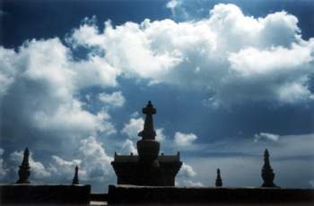 五台概况简介 五台山简况:五台山,位于山西省东北部忻州地区五台县东北隅,是我国著名的佛教四大名山之一,与四川峨眉山、浙江普陀山、安徽九华山齐名,为国内外洲人所向往。五台山座落于“华北屋脊”上,最高海拔达3058米。这里,峰峦连绵,山岳交错,形如虎踞,势如龙蟠,总面积为2837平方公里。五台山由五座山峰环抱而成。五峰耸峙,高出云表,顶无林木,平坦宽阔,如垒土之台,故名五台。五台山有东、西、南、北、中五个台顶,即东台望海峰、西台挂月峰、南台锦绣峰、山峦层叠、沟壑纵横、谷河漫流、林木耸翠,盆地与山峦交错,形成一处色彩鲜明、气候凉爽、适宜人们浏览和避暑的风光宝地. 东台望海峰 位于台怀镇东10公里。在台顶建有望海寺和佛塔。寺内供“聪明文殊菩萨”。每到夏季的晴日,拂晓时登上望海楼向东眺望,这时在你眼前出现的是云雾蒸腾,犹如海洋,烟云缭绕,旭日东升,霞光万道,胜似在海上观日出。 南台锦绣峰 位于台怀镇南12公里。台顶有石头砌成的普济寺。寺内供“智慧文殊菩萨”。台顶、山腰,野花盛开,花香馥郁,把南台顶装点的异常美丽。登临南台顶,遥望四野,花团锦簇,令人神怡。 西台挂月峰 位于台怀镇西13公里。台顶有法雷寺,寺内供:“狮子吼文殊菩萨”。站立台巅向西观望,只见山峦层叠,松林茂密,枝叶繁茂,郁郁葱葱。当值秋日,秋高气爽,日落夜静,月挂中天,景色迷离而诱人。 北台叶斗峰 位于台怀镇以北5公里。台顶海拔高度为3058米,是五台山的最高点,也是华北地区的最高峰。台顶上有石砌的灵应寺,寺内供“无垢文殊菩萨”。立于台巅北望,茫茫苍苍中,可见北岳恒山山脉峰峦层叠,接踵而来,气魄雄伟壮观。 中台翠岩峰 位于台怀镇西北10公里。山顶有寺庙演教寺,寺内供“儒童文殊菩萨”。中台顶巨石堆积,石面杂生苔藓,阳光照射,碧翠生辉,如蛟龙腾起,人们称之为“龙翻石”。五台山气象站就建于中台顶上。