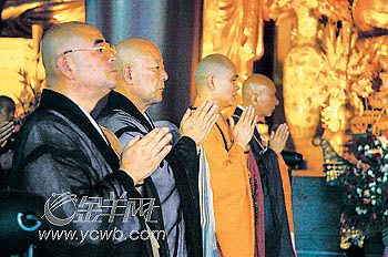 本报9月13日上午消息记者阙道华、尹安学摄影报道:今天上午9时,广州光孝寺梵音悠扬、佛旗高张,日本则竹秀南长老率领的佛教访华团与广东省佛教界在这里一起祈祷和平,纪念中国人民抗日战争和世界反法西斯战争胜利60周年。