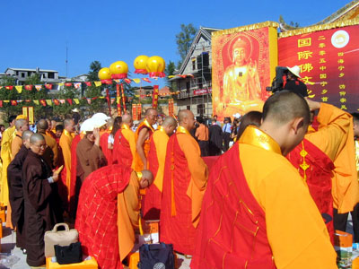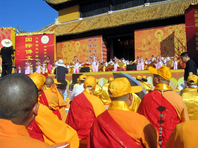 上午9时48分,毛致用宣布本届佛文化节开幕。一时间,礼炮齐鸣,彩球飞舞,写有“祈祷社会和谐、祝愿人民幸福”等祝福的彩色条幅伴随着盛开的礼花,从天而降,引来阵阵欢呼。随后,一诚法师、圣辉法师等高僧大德主持了密印寺万佛殿大佛开光大典、佛文化演证会等盛大的佛文化活动。活动中,中国佛教协会常务副会长圣辉法师表示,希望广大佛教弟子继续发扬佛教的优良传统,为国家强盛、民族振兴,宗教和谐、人民幸福、祖国统一、世界和平,为实现全面建设小康社会的宏伟目标贡献自己的智慧和力量。