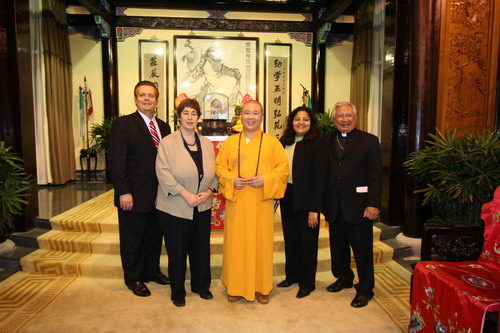8月27日下午4:00,美国国际宗教自由委员会(US Commission on International Religious Freedom)访华团访问玉佛寺寺。受到中国佛教协会副会长、上海市佛教协会会长、上海玉佛禅寺方丈觉醒法师的热情接待。参观结束后,上海市宗教界代表人士与美国国际宗教自由委员会访华团成员,在玉佛寺觉群楼五楼会议厅进行了座谈会。出席座谈会的上海市宗教界代表人士有:天主教上海教区辅理主教邢文之,天主教上海教区副主教艾祖章,天主教上海教区秘书长沈保智,上海市基督教教务委员会主席华耀增,上海市基督教三自爱国运动委员会主席傅先伟,上海市佛教协会会长觉醒,上海市佛教协会副会长王永平,上海市佛教协会副会长兼秘书长照诚,上海市佛教协会副会长周富根,上海市道教协会会长史孝进,上海市道教协会副会长吉宏忠,上海市伊斯兰教协会会长白润生,上海市伊斯兰教协会副会长金宏伟。座谈会进行了近一个半小时,于下午6:20左右结束。