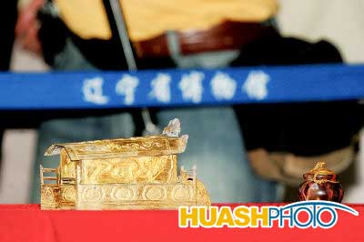 据了解,此次安全、顺利迎接来的朝阳北塔“辽代天宫”出土国宝,共有佛舍利、舍利金塔、鎏金银塔、宝盖、金银经塔、金盖玛瑙罐、银菩提树、金棺等30件套佛教文物瑰宝。这些稀世珍品,将于9月24日,在辽博举办的《佛陀之光———佛舍利及历代佛教遗宝特别展》上,与沈城的人们见面。本报记者邱宏丁宁摄影王勇