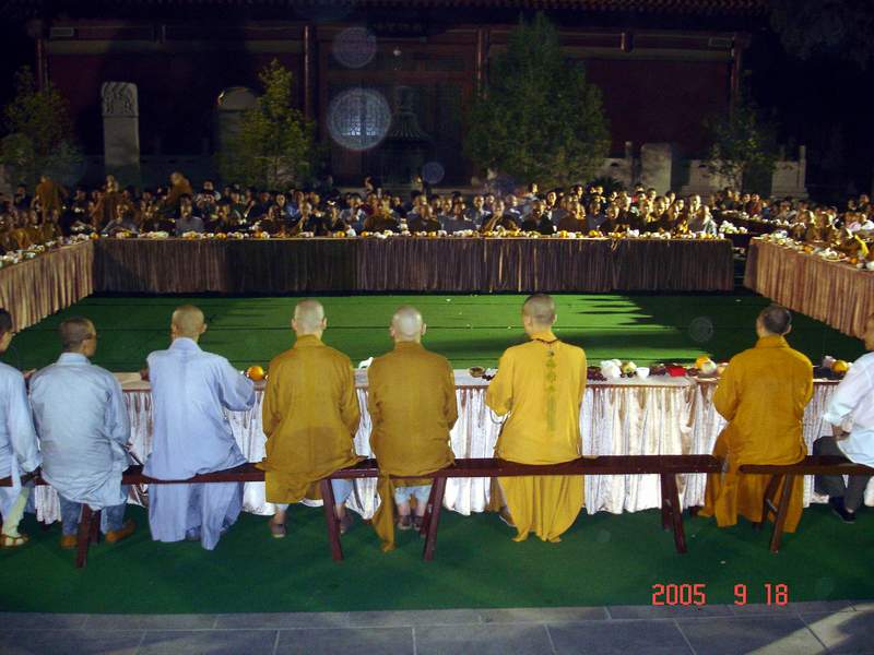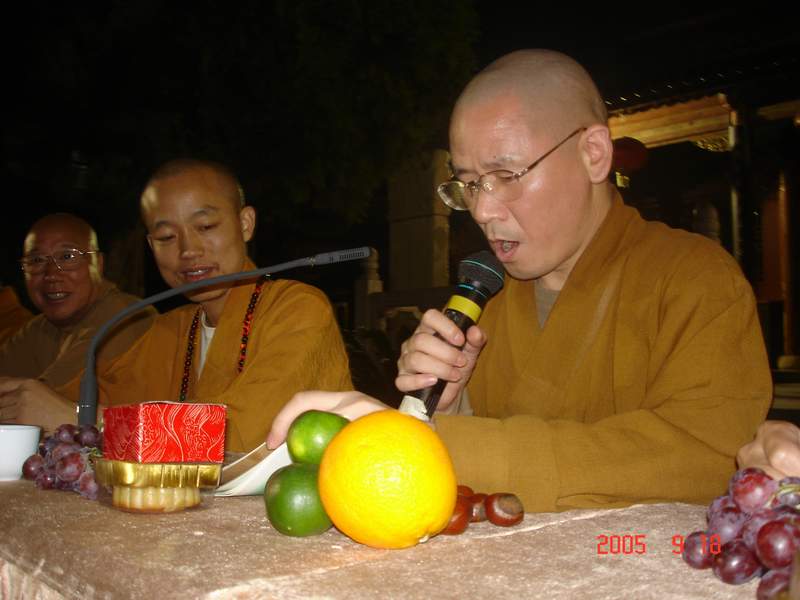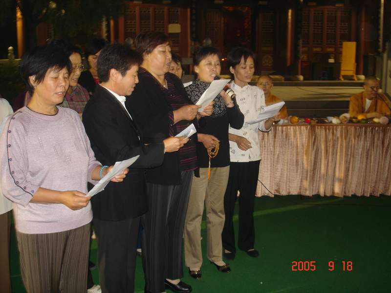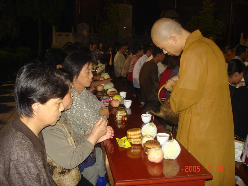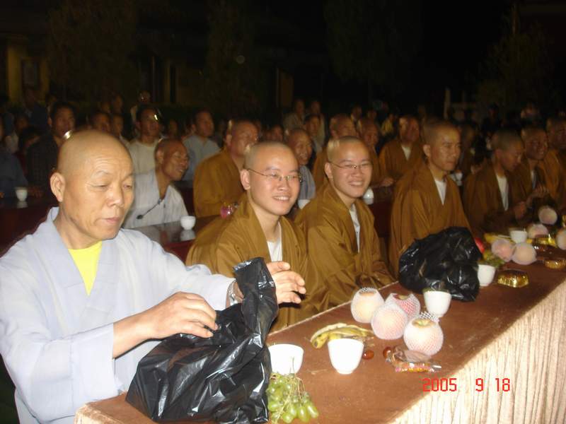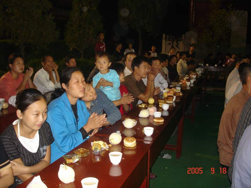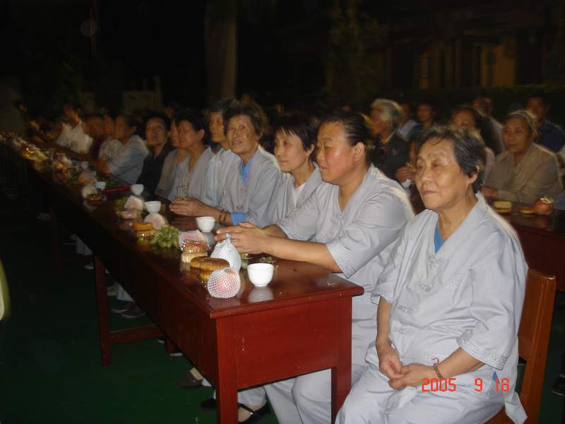 9月18日(农历八月十五)是中国传统节日中秋佳节,柏林禅寺方丈明海大和尚率两序大众在观音殿前绿茵地毯上,与赵县父老乡亲欢聚一堂共度佳节。赵县群众对寺院活动的积极参与与关心程度让大和尚大为感慨,他在晚会上当即宣布明年将采取更为积极的措施,以便让更多的赵县群众能来参与这一活动。