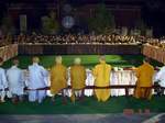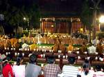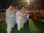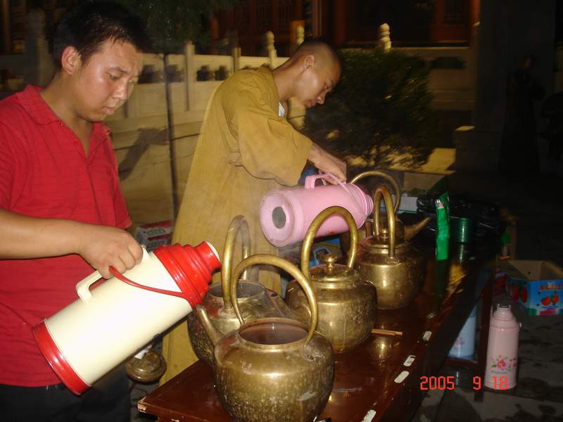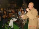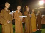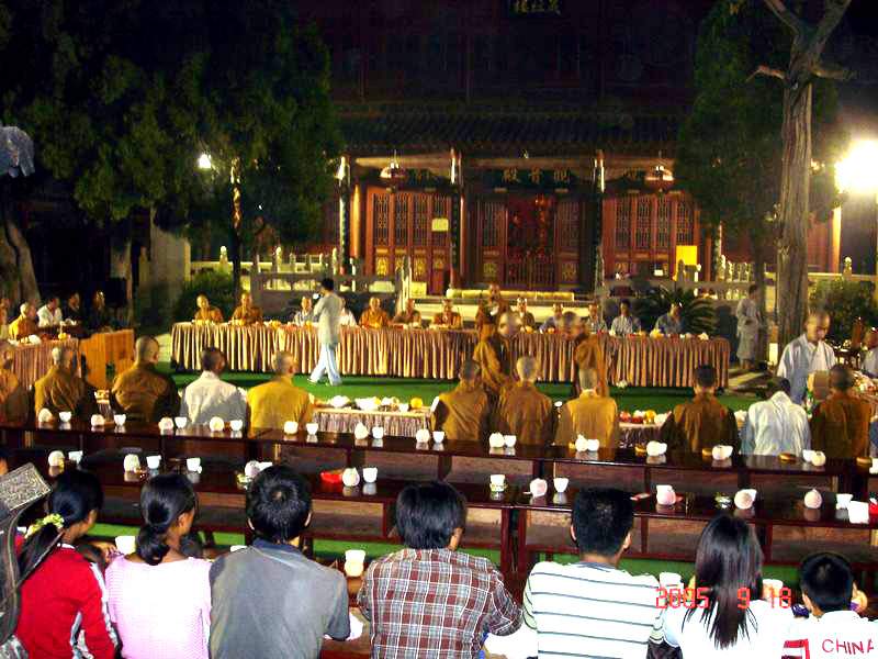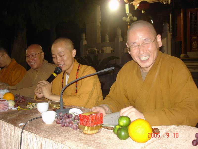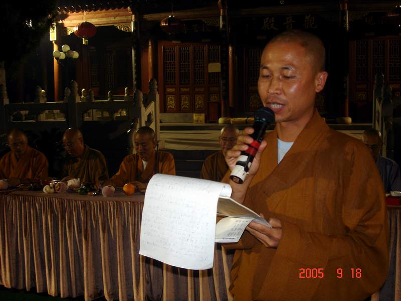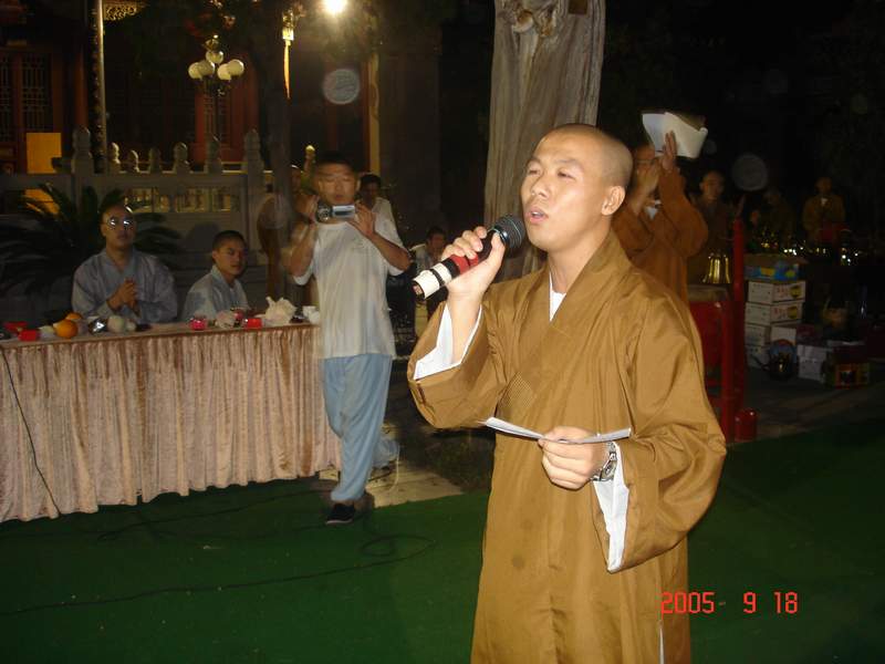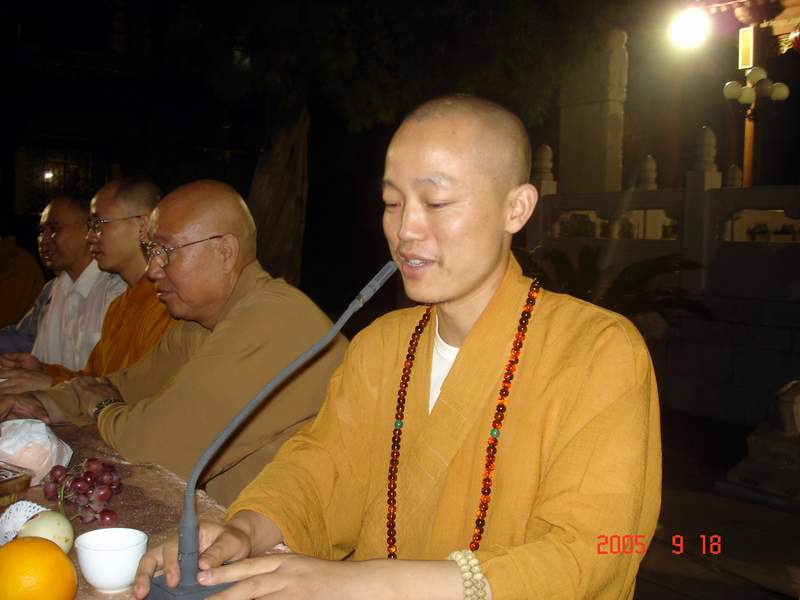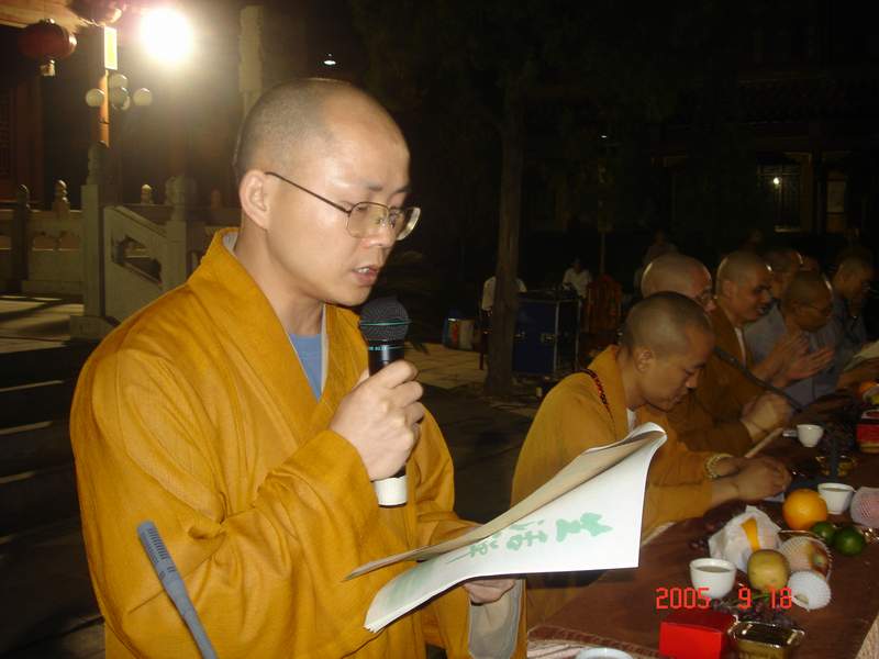 9月18日(农历八月十五)是中国传统节日中秋佳节,柏林禅寺方丈明海大和尚率两序大众在观音殿前绿茵地毯上,与赵县父老乡亲欢聚一堂共度佳节。赵县群众对寺院活动的积极参与与关心程度让大和尚大为感慨,他在晚会上当即宣布明年将采取更为积极的措施,以便让更多的赵县群众能来参与这一活动。