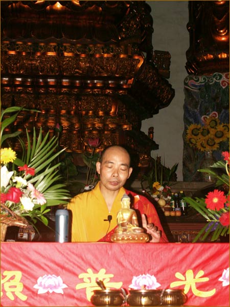 九点三十,在悦众师及受戒弟子迎请下,普仁法师进入大殿,拈香、礼佛后,为大众作了开示。
