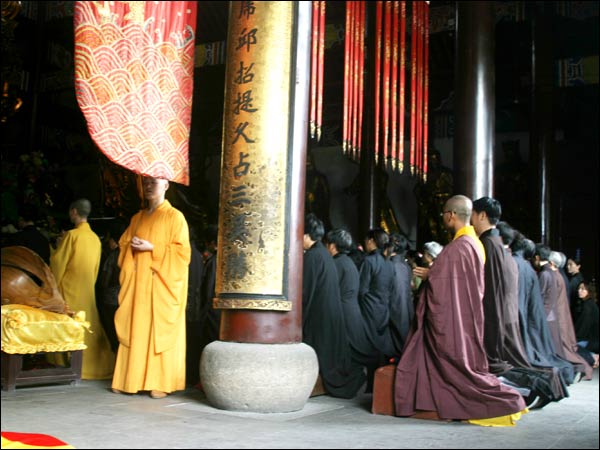 受戒结束后,大众又在大殿及广场念佛、绕佛。