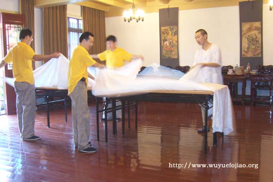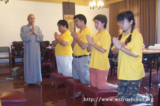 2005年8月7日,是杭州首届学佛夏令营的最后一天,大家一早就忙碌卫生,布置联欢会场,由于有几位营员要归依三宝,大家在静静等待主持归依师父光泉法师的到来,为了不浪费在法净寺的每分每秒,大家打开了投影机,静静的看起了慧律法师主讲的“有佛法就有办法”的VCD。十点,几位参加夏令营的青年,通过这次学佛夏令营的活动,便发愿归依了三宝。而这次参加活动的大都是归依过的三宝弟子,大家都十分精进,虽然人数不多,但学习更为殊胜。最后由隆净法师和常进法师主持了总结联欢会,大家有说有笑,每位都谈了自己的心得。夏令营结束了,都有一种恋恋不舍的感觉,虽然这次活动要结束,其实我们的菩提心、学佛之心没有结束,可能通过这次夏令营活动,更加深了学佛的信心、更加深坚固了菩提善根。夏令营的结束,却迎来是一个学佛而崭新的开始, 一个具有重新认识走向社会的开端,通过了这一周的夏令营活动,通过对佛法的学习、行脚、诵经、修止观、抄经、放生、传灯等等,通过导师一方法师、妙音法师的慈悲教导;通过参学中韬光寺超然法师及净慈寺延光法师的慈悲开示;你们完全改变了以前的你,对佛法的认识,对寺院的了解,对丛林生活与师父们一起生活的感受,如同短期出家的体验等等,在你们今后的人生中,会深深的记载下这次夏令营难忘的一周。