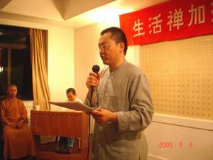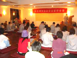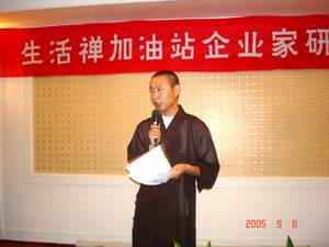 柏林禅寺网站报道:全国各地近 30 位在北京大学哲学系进修的企业家们,自从去年冬日在北京大学,听明海法师讲过“半日说禅”课后,便对佛法心生向往。 2005 年的 9 月 8 日 ,他们终于如愿以偿的来到了千年古刹柏林禅寺。