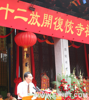 奉化市副市长何剑波先生、宁波市民总局领导、宁波市统战眼部副部长陆立宪先生纷纷上台讲话,对雪窦寺20年来取得的成绩给与了充分肯定。