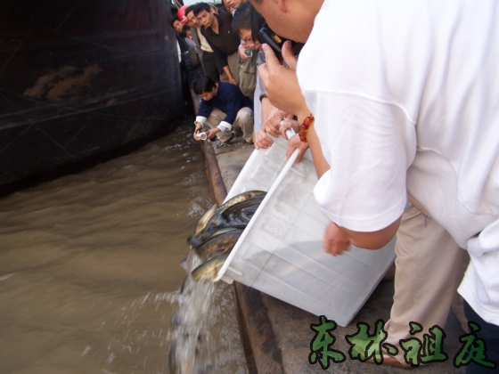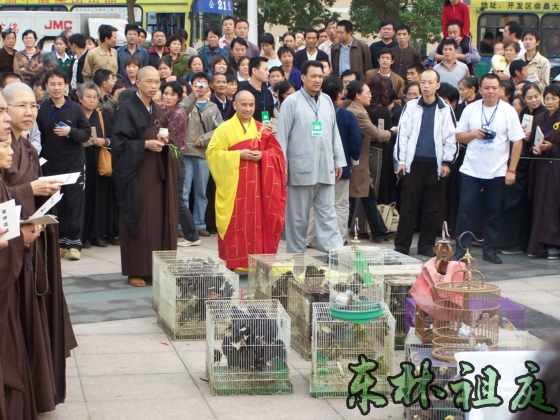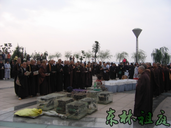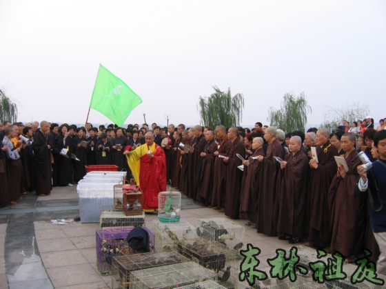 2005年10月7日下午3点,黄金周佛七结束后,四众弟子在东林寺护生会的组织下,进行了一次放生。这次放生的参与人数很多,租的车辆就有6部公交车。在放生仪式上,由于放生规模大,吸引了很多社会人士围观。