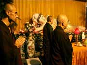 今天上午,法会在西园寺下院定慧寺如期举行。西园寺念佛堂堂主常佑法师拈香后,大众共同诵念《阿弥陀经》。随后,西园寺念佛堂及定慧寺的法师们带领大众绕佛并静坐默念佛号。场面庄严如法,令人法喜充满。