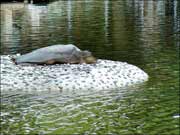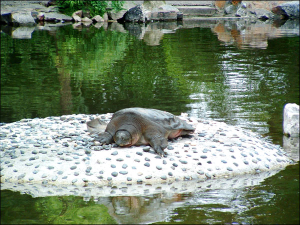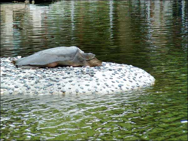 苏州西园寺放生池内,生活着两只明代放生于此的珍稀斑鼋,至今已有四百多岁高龄。江南一带,香客游人均视能见此物为吉祥幸事。