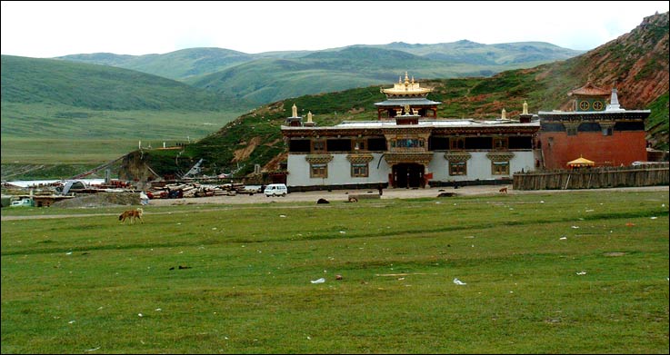 始建于公元850年左右,曾三度迁址,为康区十三大黄教寺庙之一.寺院依山而建,气势宏伟.