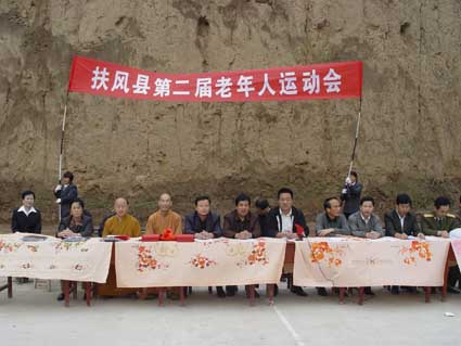 爱乡爱民 法门寺僧众赞助扶风县第二届老年运动会