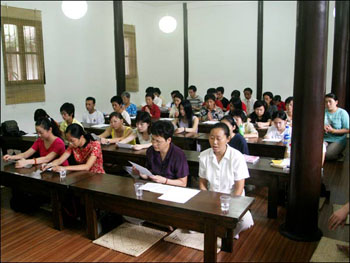 10月1日下午,苏州西园寺青年学佛组开展了一场别开生面的学唱佛教歌曲活动。首先由戒幢佛学研究所的两位法师带大家唱传统的佛教梵呗——“炉香赞”。随后,大家跟着背景音乐一起学唱现代佛教歌曲,共学了四首歌,分别是“生活禅曲”、“寒山僧踪”、“观音菩萨如秋月”、“楞严一笑”。最后,活动在庄严的“三宝歌”中圆满结束。整个活动气氛热烈,学员门深深地被优美而庄严的佛教音乐所吸引、所感动。据了解,8日,戒幢佛学研究所成峰法师还为青年学佛组学员作了《三宝歌》释义,就三宝内涵及歌曲深义进行了详细介绍。