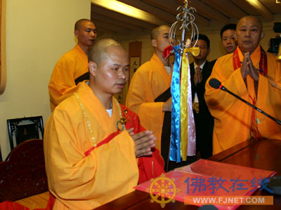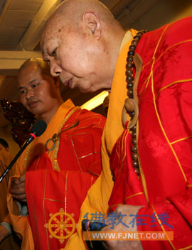 之后,一诚长老在庆典上作了发言,他对新方丈提出了希望和要求,希望他继承佛教及真如禅寺爱国爱教、利乐有情的优良传统,发挥佛教的积极作用,为构建和谐社会作出应有贡献。一诚长老还向纯闻法师移交了真如禅寺万年簿及寺院财物。最后,由纯闻法师致辞,他在致辞中向诸山长老和各方领导、护法表示了衷心的感谢.