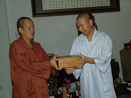 向般若岩空俨法师赠送“月光宝盒“——茶具