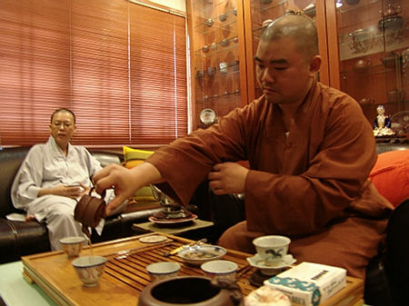 “无我茶会”是禅茶会的亮点。每个人郑重的抽签拿到坐号后进入禅堂找到各自的位置,一切都在无声、有序、默契中进行。无我茶会本着无尊卑之分、无报偿之心、无好恶之心、无流派与地域之分、求精进之心、遵守公共约定、培养团体默契七大精神进行。