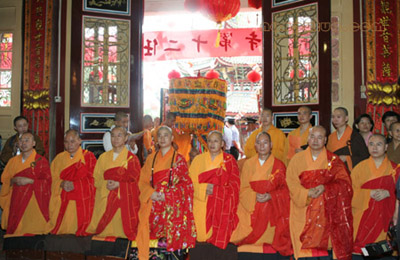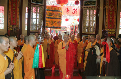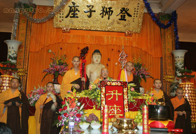 当日上午,香花灯烛、旗鼓音乐庄严了整个南普陀。寺院内外海众云集,翘首殷勤。9时30分,圣辉法师晋升法主之仪式在南普陀寺法堂举行。仪式上,圣辉法师郑重传法于新任方丈则悟法师,并叙述了则悟法师生平,赞叹则悟法师勤勉负责、智慧慈悲、年轻有为。随后,圣辉法师勉励南普陀寺各大职事再接再励,共创南普陀寺灿烂明天。