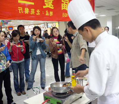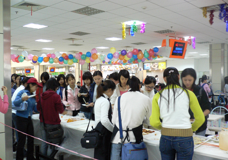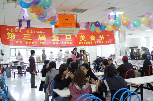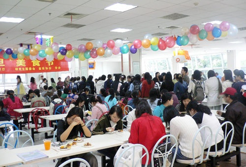 分餐、维持秩序、主持、宣讲素食利益的工作由素食协会的几十位会员同学承担