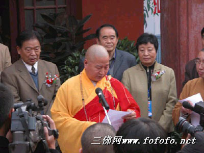 大相国寺方丈心广法师在揭牌仪式上讲话