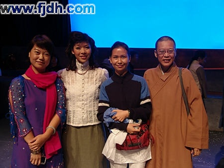 佛音大家唱志愿者与周博慧(程子扮演者)、传闻法师合影留念。