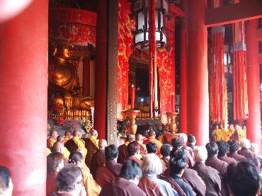 11月8日,各界人士集聚在开封大相国寺,参加大相国寺建寺1450年庆典仪式。大相国寺是著名佛教寺院,始建于北齐天宝六年(公元555年)。北宋时期多次扩建,占地达500余亩,辖64个禅院、律院,养僧千余人,后因战乱水患而损毁。目前保存有天王殿、大雄宝殿、八角琉璃殿、藏经楼、千手千眼佛等殿宇古迹。1992年恢复佛事活动,重建钟楼、鼓楼等建筑。 |