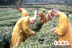 佛教自东汉传入我国之后,便与中华文化融为一体。据记载,早在晋代慧远大师便在庐山东林寺,以自制的佳茗款待陶渊明,“话茶吟诗,叙事谈经,通宵达旦”。杭州天竺诸寺种茶的历史非常悠久,隋唐以来,天竺僧人即引栽种、炒制“山茶”之法,明朝中叶后,与“龙井”并列为西湖“两山绝品”。南宋《咸淳临安志》记载:“岁贡,见旧志载,钱塘宝云庵产者名‘宝云茶’,下天竺香林洞产者名‘香林茶’,上天竺白云峰产者名‘白云茶’”。北宋上天竺住持辩才大师即在寺周栽种茶树,后辩才大师移锡龙井寺,即将“白云茶”移植至龙井,明朝后始有“龙井茶”的专称。杭州中天竺法净禅寺为了保护古老的天竺佛教茶文化,特在寺院后山置地种茶,采用传统种植炒制之法,为广大爱茶之士奉出天然无公害之有机绿茶,口感醇厚,香味浓郁,不失为上好佳茗。