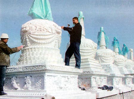 大召寺前又有了新景,全长22.9米,高度为5.6米的释迦牟尼大功德八塔目前已经建成。这八座塔每一座皆有含义和名称,它们由各塔基、塔瓶、塔颈、塔叉、塔顶五个部分组成,分别代表土、水、火、风、空五方面,体现了藏传佛教文化特点。