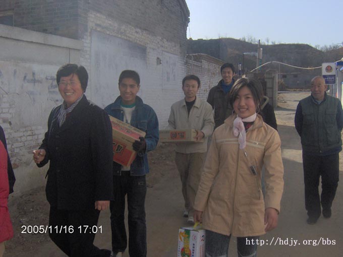 到家7点钟,正是吃晚饭的时刻,晚饭是菜汤、烧饼,家园的饭堂里热热闹闹。奔波一天的天津朋友们匆匆的吃饭,而后连夜赶回天津。余华博士说,次日他还有一门很重要的课,不能迟到,冯常瑾和黄兴杰正读大四,面临着就业和留学。他们极其郑重的告诉我,如果有在保定、秦皇岛等距天津不太远的资助活动,希望能通知他们。我知道,这一日的灵寿之行,将对他们的一生都有着不同寻常的意义。