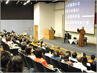 应香港中文大学佛教研究中心邀请,星云大师日前至该校崇基学院,院长梁元生教授进行座谈,畅谈佛法与管理,共有二百五十位学者、学生列席聆听。