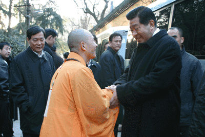2005年12月15日下午,全国政协主席贾庆林同志在国家宗教局局长叶小文、省委书记习近平、省长吕祖善、市委书记王国平、市长孙忠焕、市民族宗教事务局局长赵一新同志的陪同下视察灵隐寺。