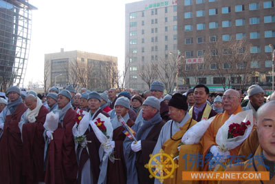 在釜山火车站迎接佛指舍利的韩国法师